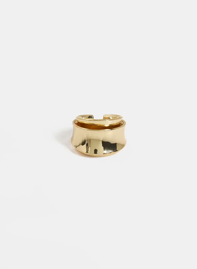 Waterproof Gold Plated Stainless Steel Square Cubic Zirconia Double Layered Ring