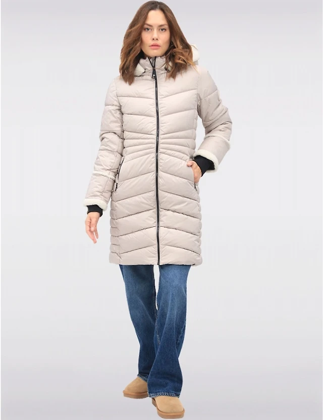 Doudoune Longue Végan avec Détails en Sherpa & Capuche Amovible par Point Zero