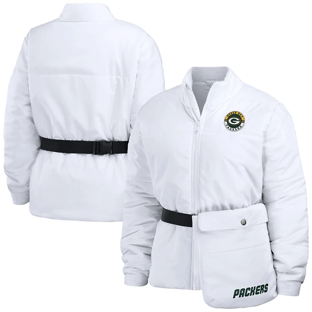 Doudoune zippée entièrement compressible WEAR by Erin Andrews pour femme, blanche, des Green Bay Packers