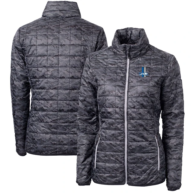 Doudoune zippée intégrale pour femme avec logo rétro Rainier PrimaLoft imprimé des Detroit Lions, noire, Cutter & Buck