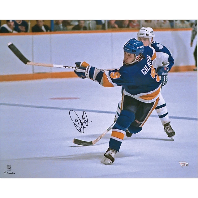 Doug Gilmour St. Louis Blues Photographie autographiée de tir en maillot bleu 16" x 20"