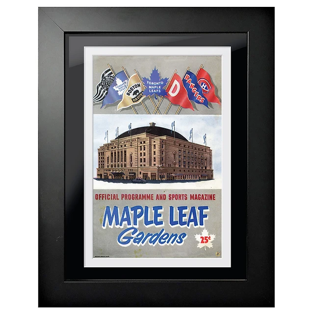 Drapeaux de bannière Maple Leaf Gardens des Maple Leafs de Toronto - Couverture de programme encadrée de 12 po x 16 po