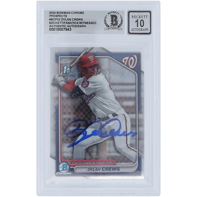 Dylan Crews Washington Nationals Autographié 2024 Bowman Chrome Prospects 1er Bowman #BCP-23 Beckett Fanatics Témoin Authentifié 10 Carte