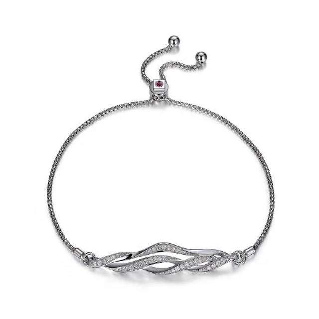 Sterling Silver Cubic Zirconia Bolo Adjustable Bracelet