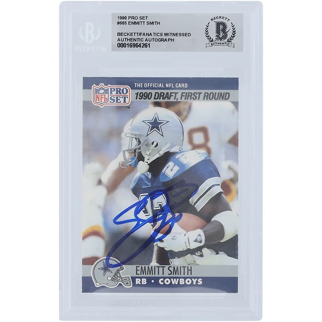 Emmitt Smith Dallas Cowboys Autographed 1990 Pro Set #685 Beckett Fanatics Witnessed Authenticated Rookie Card