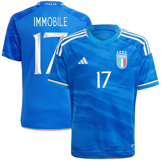 Enfant adidas Ciro Immobile Bleu Italie Équipe Nationale 2023 Domicile - Maillot Replica Player