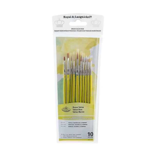 10-Pack Gold Taklon Brushes - Detail/Shader