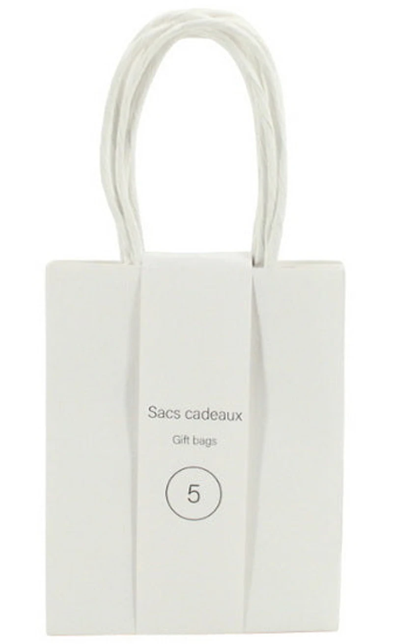 Cet ensemble de cinq mini sacs cadeaux en kraft blanc convient parfaitement aux petites attentions. Leur format compact et leur finition sobre s’adaptent à toutes les occasions. Une solution pratique pour emballer bijoux, friandises ou petits objets avec simplicité.