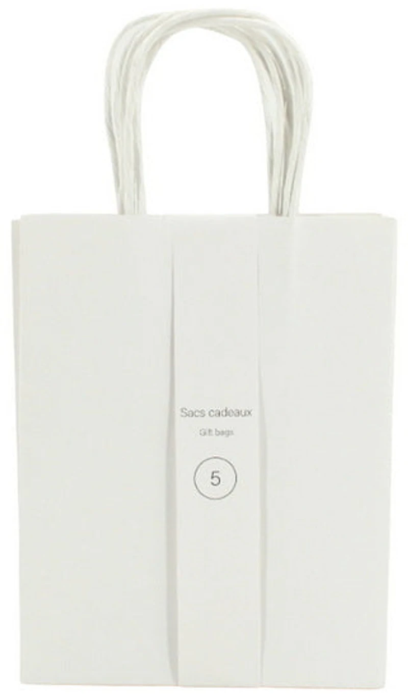 Cet ensemble de cinq sacs cadeaux en kraft blanc au format petit est idéal pour l’emballage de présents légers. Leur design épuré convient à toutes les occasions, tandis que les poignées facilitent le transport. Une solution pratique et polyvalente pour un emballage soigné.