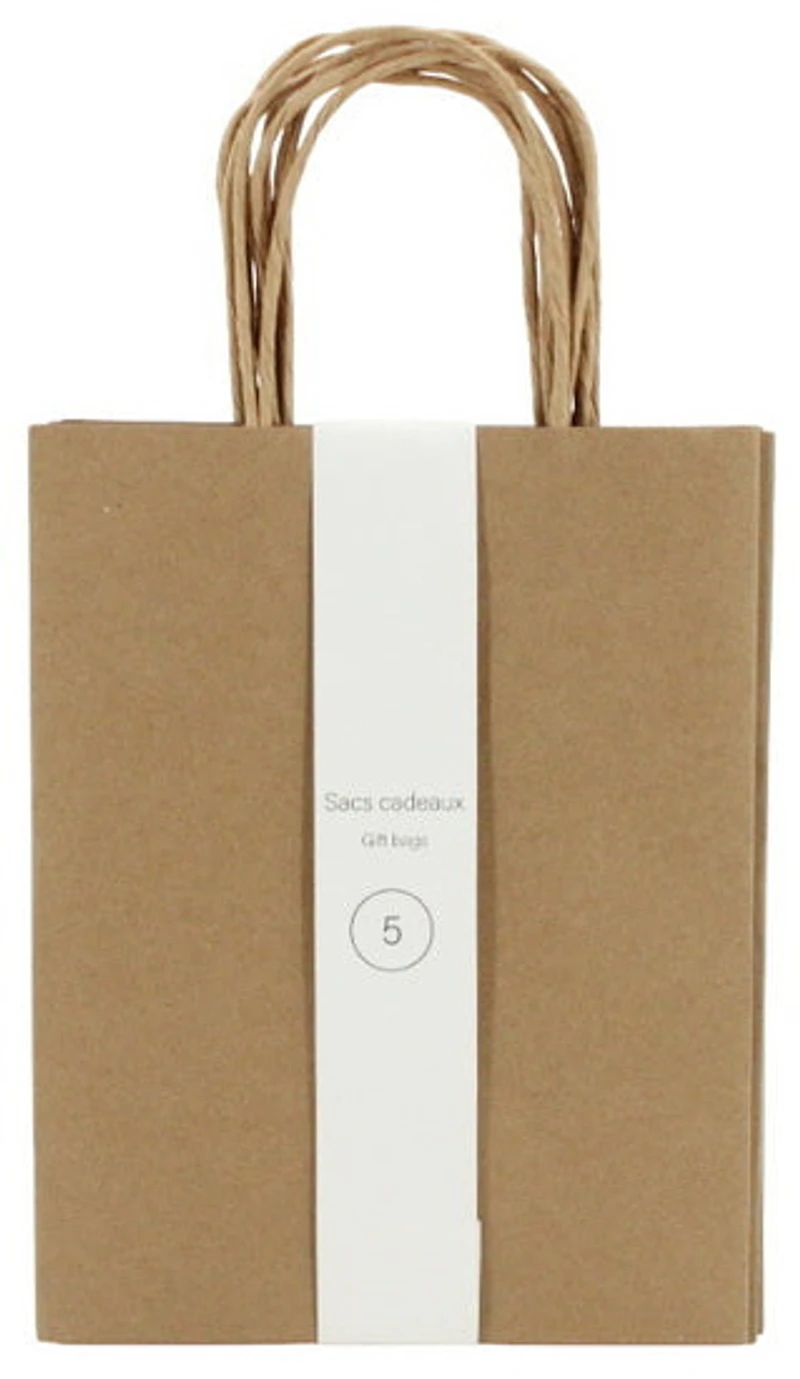 Cet ensemble de cinq sacs cadeaux en kraft brun au format petit est parfait pour l’emballage de présents légers. Leur style naturel s’adapte à toutes les occasions, tandis que les poignées facilitent le transport. Une option simple et pratique pour un emballage soigné.