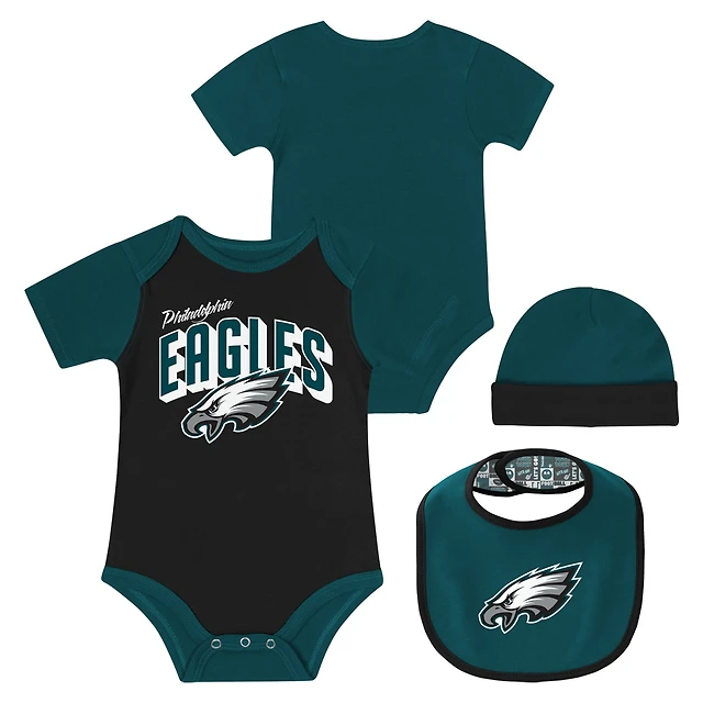 Ensemble body, bavoir et bonnet Dynamic Duo pour nouveau-né bébé Philadelphia Eagles