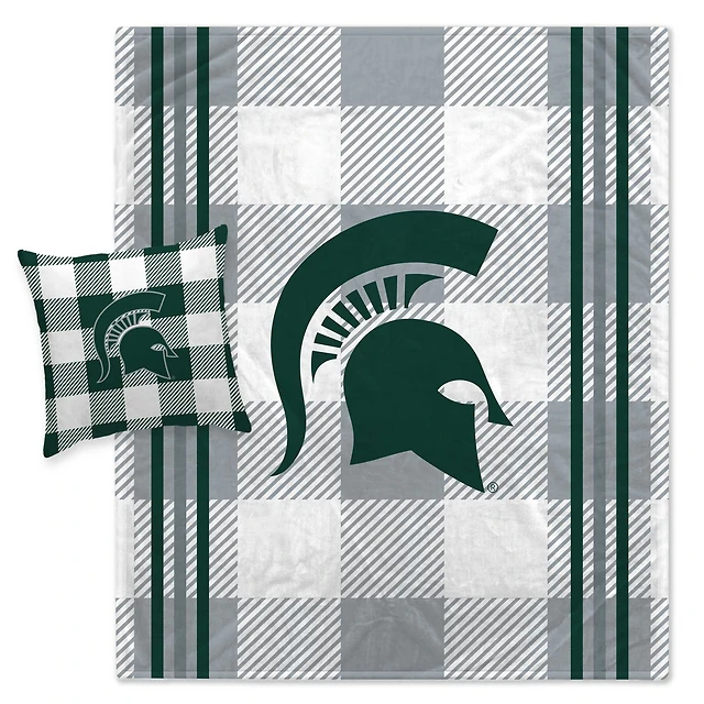 Ensemble combiné couverture et oreiller à carreaux gris Pegasus Michigan State Spartans
