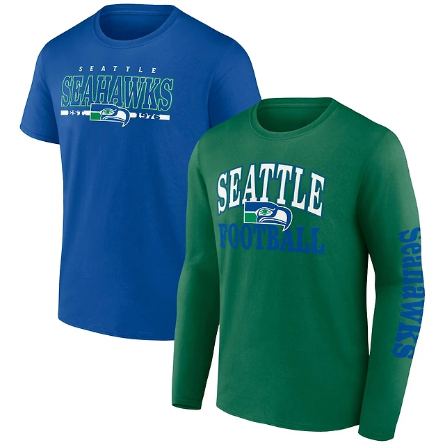 Ensemble combiné de deux t-shirts Throwback Fanatics Royal/Green Seattle Seahawks pour hommes