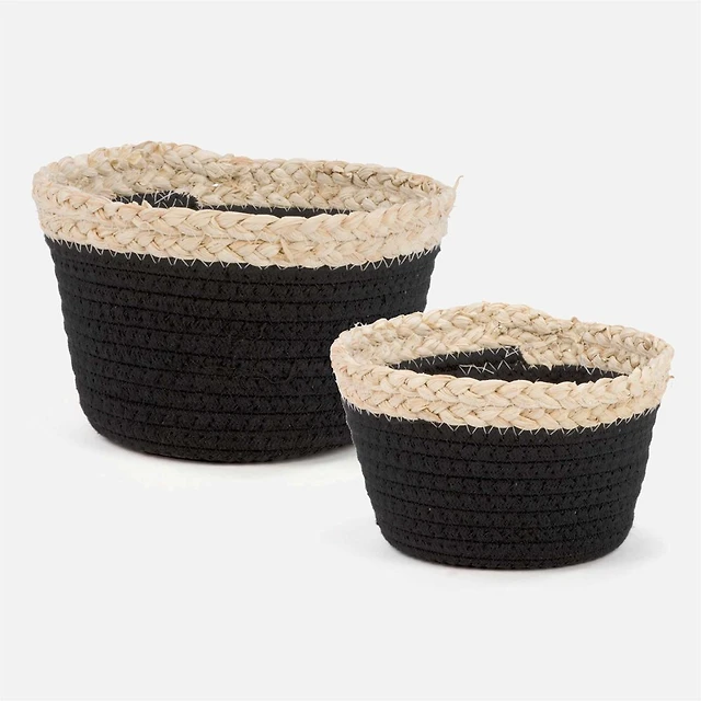 Ensemble de 2 paniers de rangement avec garniture naturelle - Noir