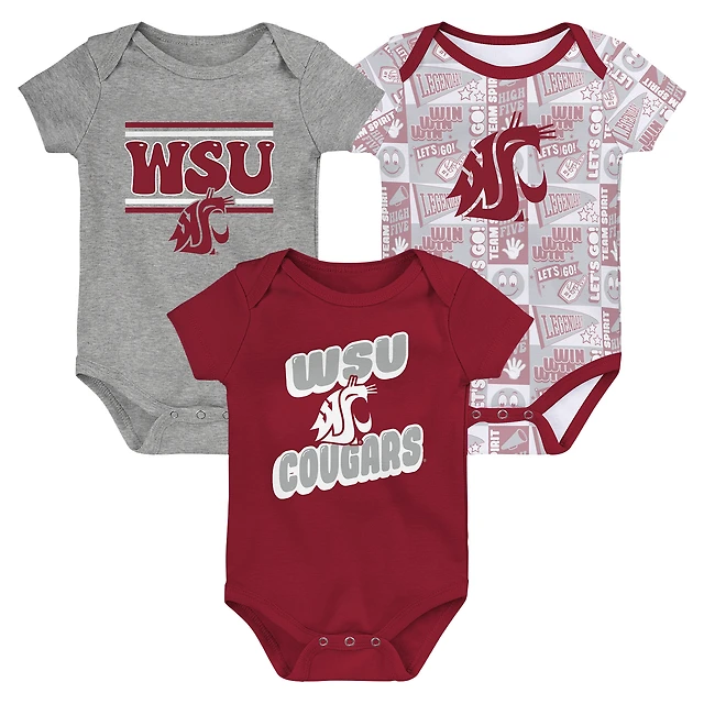 Ensemble de 3 bodies pour nouveau-né Crimson Washington State Cougars Sunday Comics