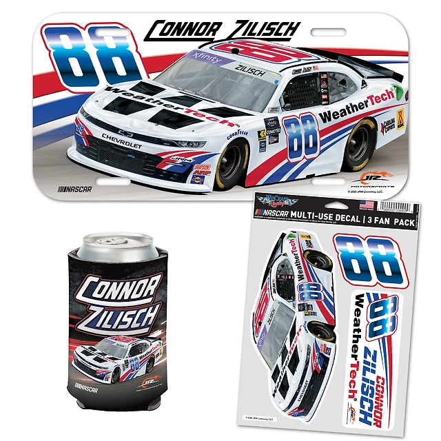 Ensemble de décalcomanies pour refroidisseur de canettes, plaque d'immatriculation et ventilateur WinCraft Connor Zilisch WeatherTech en trois pièces