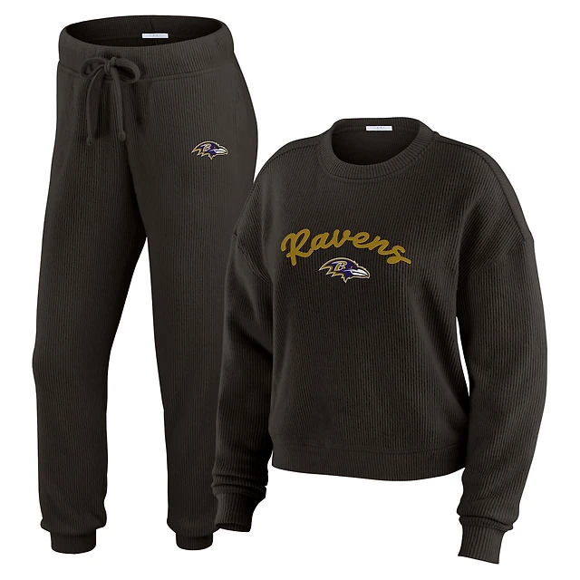 Ensemble de détente pour femme WEAR by Erin Andrews composé d'un t-shirt à manches longues et pantalon en tricot tri-blend des Baltimore Ravens couleur crème