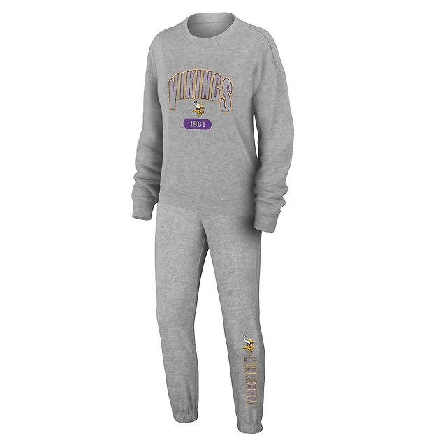 Ensemble de détente pour femme WEAR by Erin Andrews Heather Gray Minnesota Vikings en tricot tri-blend à manches longues et pantalon grande taille