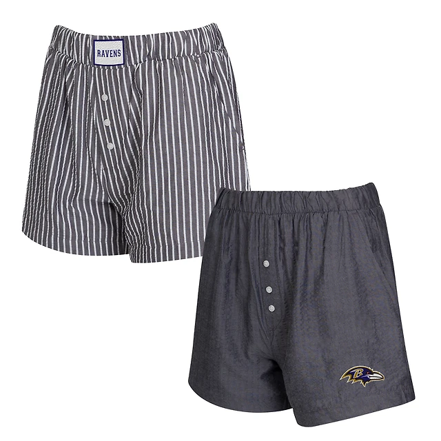 Ensemble de deux boxers à rayures et imprimés unis pour femme Concepts Sport Charcoal Baltimore Ravens
