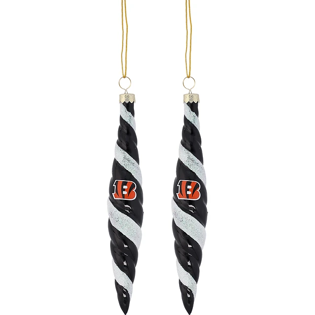 Ensemble de deux ornements en verre soufflé tourbillonnant des Bengals de Cincinnati