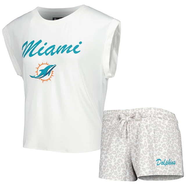 Ensemble de nuit Concepts Sport blanc/crème pour femme, haut et short en tricot Montana, Miami Dolphins