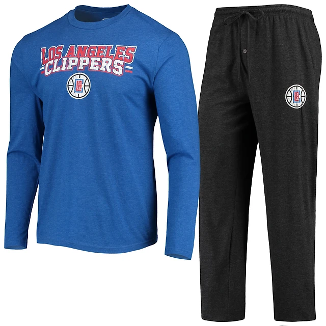 Ensemble de nuit Concepts Sport noir/bleu roi LA Clippers pour homme, haut à manches longues et pantalon