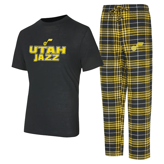 Ensemble de nuit Concepts Sport noir/or pour homme, haut et pantalon en flanelle Vector Utah Jazz