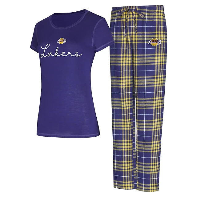 Ensemble de nuit Concepts Sport violet/or pour femme, haut et pantalon en flanelle Vector des Los Angeles Lakers