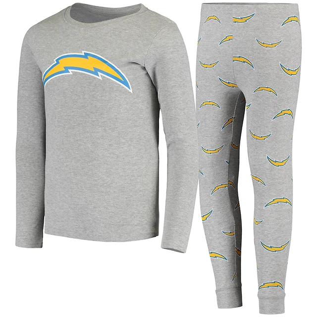 Ensemble de nuit gris avec t-shirt à manches longues et pantalon Los Angeles Chargers pour jeune