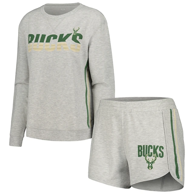 Ensemble de nuit pour femme Concepts Sport Gray Milwaukee Bucks Cedar avec haut à manches longues et short