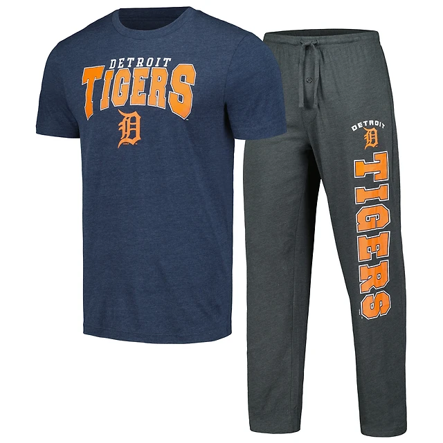 Ensemble de nuit pour homme Concepts Sport anthracite/bleu marine Detroit Tigers avec haut et pantalon Meter