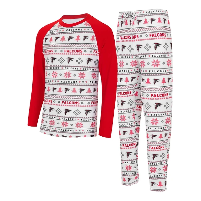 Ensemble de nuit pour homme Concepts Sport blanc/rouge Atlanta Falcons Tinsel Raglan à manches longues et pantalon