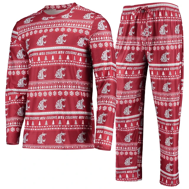 Ensemble de nuit pour homme Concepts Sport Crimson Washington State Cougars, pull moche à manches longues et pantalon