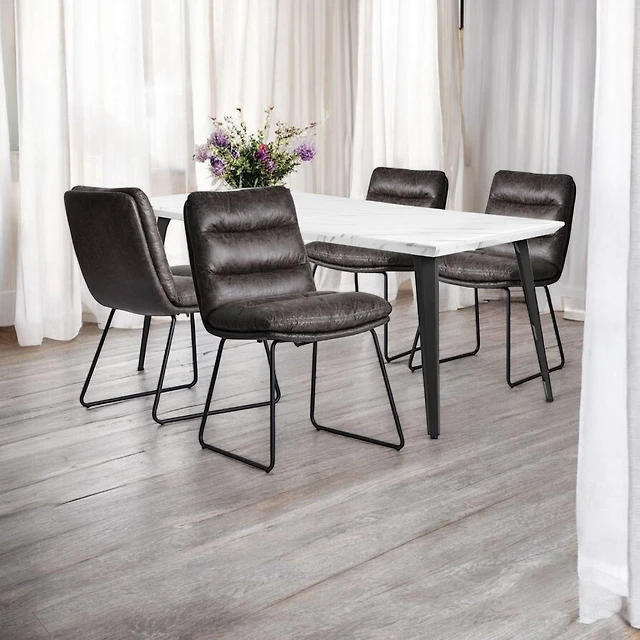 Ensemble de salle à manger en finition marbre avec chaises grises, ensemble de 5