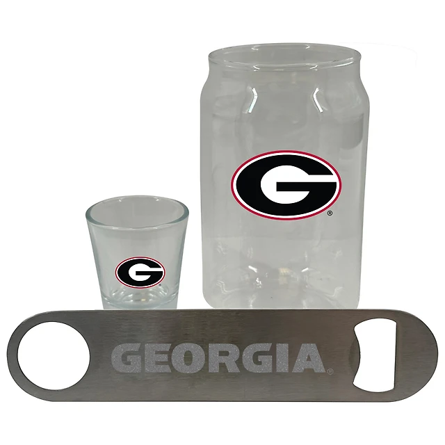 Ensemble de trois verres à bière Georgia Bulldogs de The Memory Company, verre à liqueur de 2 oz et décapsuleur
