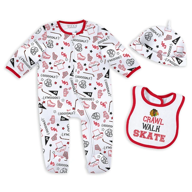 Ensemble pyjama et bavoir pour nouveau-né bébé par Erin Andrews Chicago Blackhawks Sleep and Play