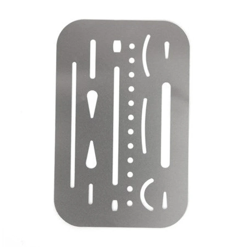 Erasing chart made from supple metal of 3 5/8 x 2 3/8 inches.