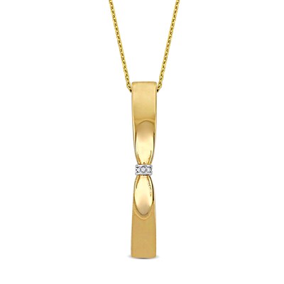 Wrap up your look with the modern yet playful design of this diamond accent bow tie bar pendant in 14K gold.