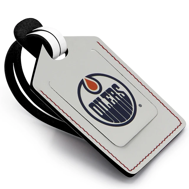 Étiquette de bagage en cuir personnalisée des Oilers d'Edmonton, blanc