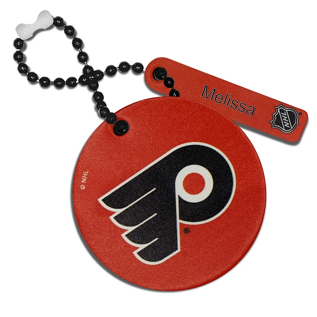 Étiquette de sac rectangle en cuir orange Philadelphia Flyers personnalisée