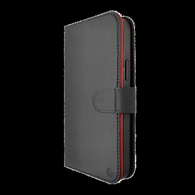 Étui MagSafe 2-en-1 avec Rabat en Cuir et Dos Amovible Uunique pour iPhone 15 Pro - Noir/Rouge