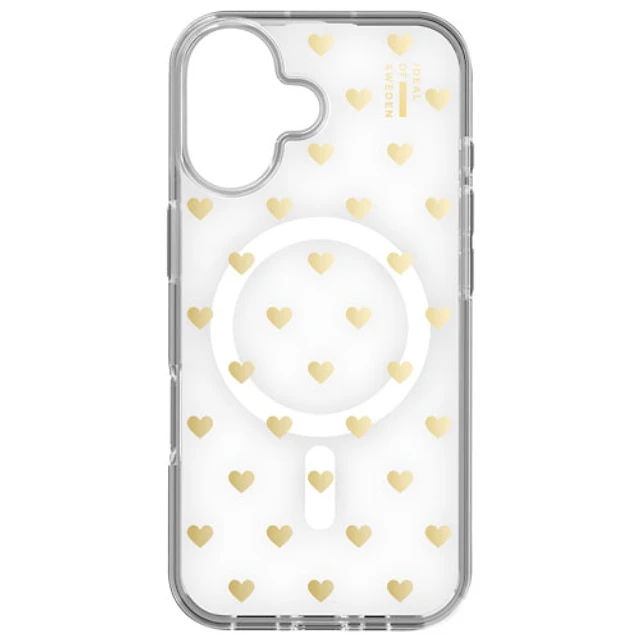 Étui rigide ajusté d'Ideal of Sweden avec MagSafe pour iPhone 16 - Coeurs dorés
