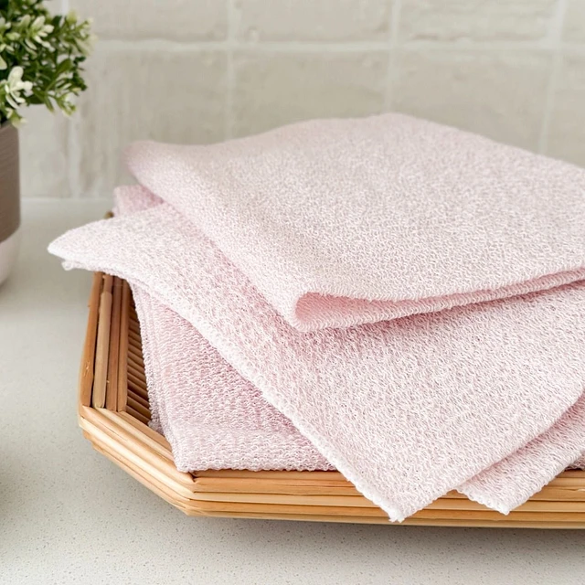 Exfoliating Bath Cloth with Rope Handles - Pink
