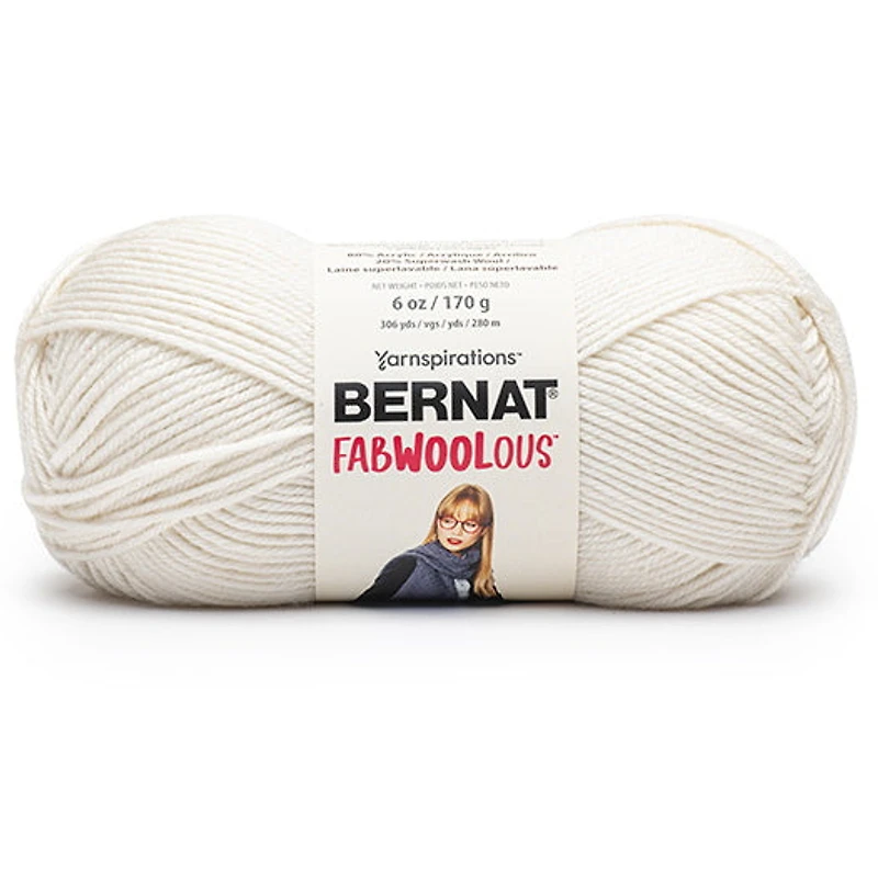 Bernat Fabwoolous yarn offers a blend of anti-pill acrylic and superwash wool that keeps your projects looking fabulous—even after washing them! This Turkish yarn is perfect for sweaters, afghans, accessories, and home decorations.Features: Content: 80% acrylic, 20% superwash wool Care: machine wash Weight: 100 g/3.5 oz Yardage: 280 m/306 yd Gauge: 4 worsted weight Knitting gauge: 24 rows x 18 sts = 4 x 4 in (10 x 10 cm)  Crochet gauge: 24 rows x 18 sc = 4 x 4 in (10 x 10 cm) Knitting needle: 5 mm Crochet hook: 5 mm