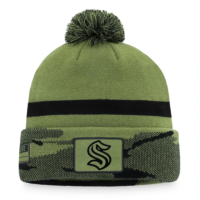 Fanatics Camo/Black Seattle Kraken Military Appréciation pour hommes - Bonnet en tricot à revers avec pompon