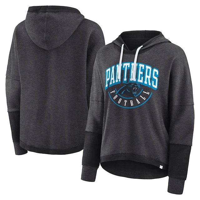 Fanatics Charcoal Carolina Panthers Lightewight Modest Crop Lounge Casque Arch Pull à capuche pour femmes