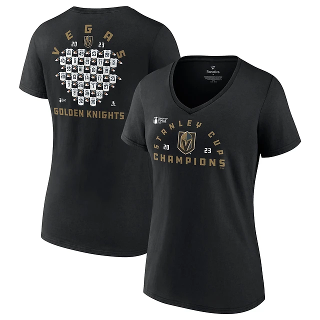 Fanatics pour femmes Black Vegas Golden Knights 2023 Stanley Cup Champions Jersey Roster T-shirt à col en V