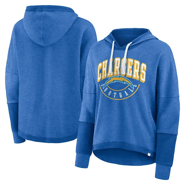 Fanatics pour femmes bleu poudre Los Angeles Chargers Lightewight Modest Crop Lounge Casque Arch Pull à capuche