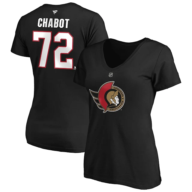 Fanatics pour femmes de marque Thomas Chabot Black Ottawa Senators - Authentic Stack Name & Number T-shirt à col en V