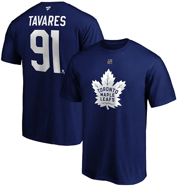 Fanatics pour hommes de marque John Tavares bleu Toronto Maple Leafs Logo Authentic Stack Name and Number - T-shirt